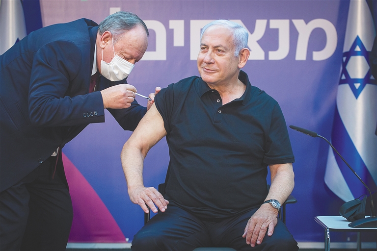 1月9日,以色列总理内塔尼亚胡(右)接种第二剂新冠疫苗。