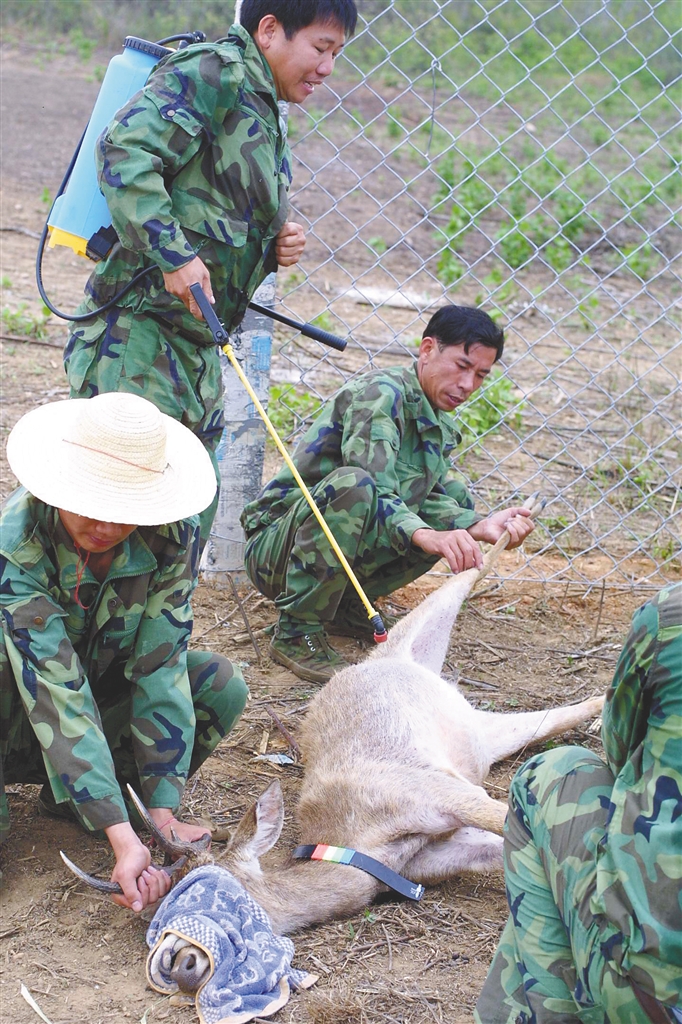“海南坡鹿本身的种群繁殖能力并不存在问题,保护区的气候条件、植被、水源和地理位置等自然环境,也十分适宜海南坡鹿的生息。”在大田保护区管理局副局长余法升看来,假设没有人类活动干扰,坡鹿完全可以在大自然中自由栖息,“就算遇到了干旱天气,鹿群在这片草地找不到食物,还可以迁徙到另外一片草地觅食。”
