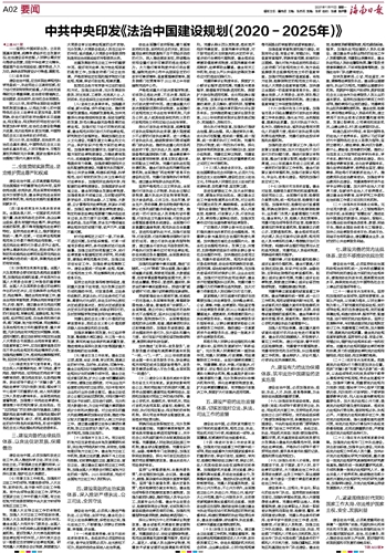 中共中央印发《法治中国建设规划(2020-2025年)》