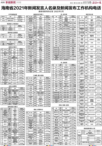 海南省2021年新闻发言人名录及新闻发布工作机构电话