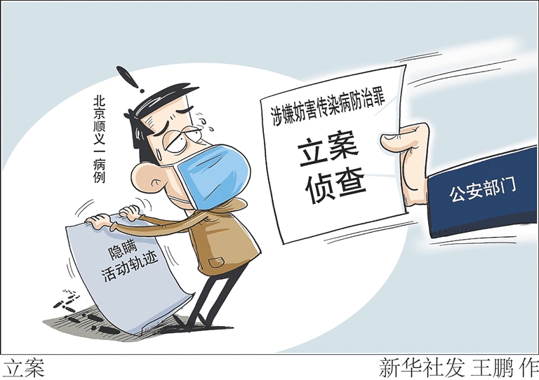 新华社北京1月12日电 (记者谢昊)在12日举行的北京市新冠肺炎疫情防控工作新闻发布会上,北京市顺义区委常委、常务副区长支现伟通报,针对9日公布的确诊病例存在隐瞒活动轨迹、密接人员、发病就诊等情况,涉嫌妨害传染病防治罪,公安部门已开展立案侦查。
