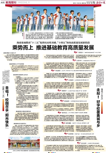 刚交答卷,再起宏图。本期海南日报《教育周刊》撷取“十三五”期间海南基础教育发展亮点,记录基础教育工作者的汗水和智慧,从中窥得教育均衡发展的精髓;展现“十四五”期间我省基础教育高质量发展部署的宏伟蓝图。
