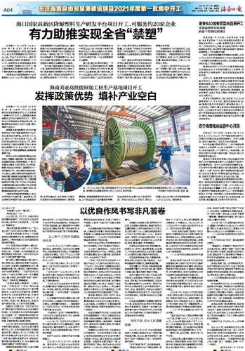 第004版:关注海南自由贸易港建设项目2021年度第一批集中开工