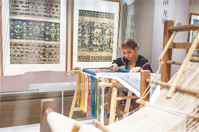 “黎锦不应仅仅摆在博物馆里或者织女的家里,应该用传统元素和现代设计相结合的方式,走近更多人。” 与黎锦“结缘”十多年的海南锦绣织贝公司董事长郭凯对此深有感触。