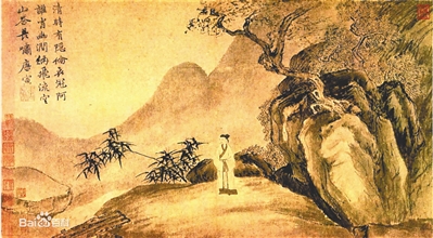 《空山长啸图》所画为一高士行吟于山涧峡谷之中。作者题诗曰:“清时有隐伦,衣冠阿谁肖。幽涧纳飞瀑,空山答长啸。”其意表现出一个宦海失意文人的怅惘,唐寅才华横溢,但命途乖蹇,画中高士,乃其化身。