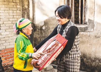 1月15日下午,儋州市新州镇西边村,一爱心企业慰问73岁的老人黄二女,给老人送御寒物资和食品。