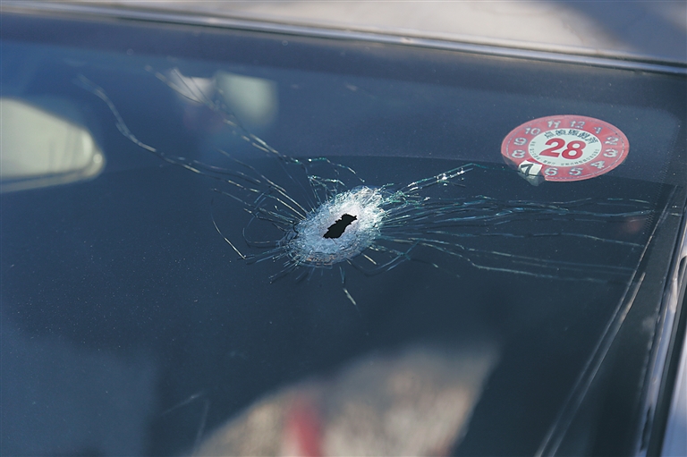 这是1月17日在阿富汗喀布尔拍摄的轿车上的弹孔。
