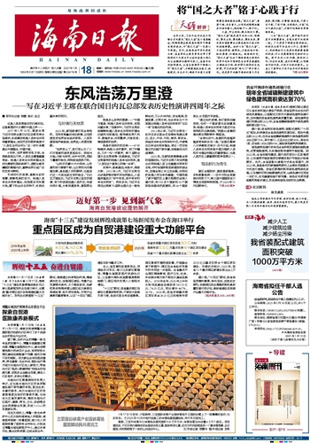 | 海南日报 头版 001 2021-01-181 2021年01月18日 星期一 |