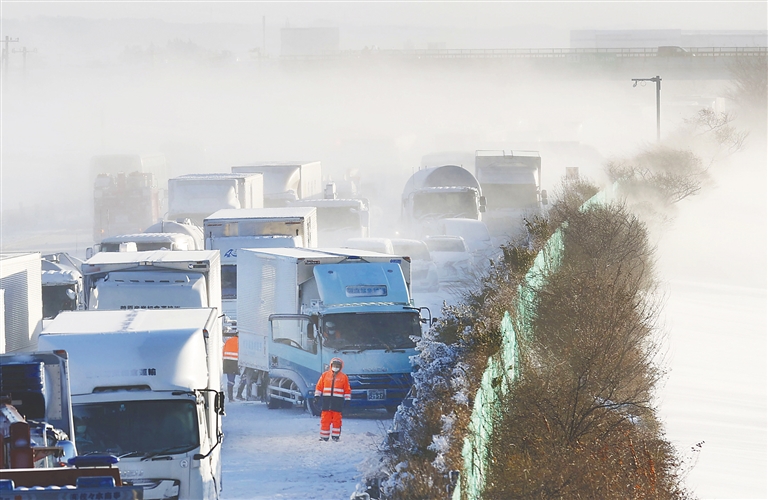 受暴风雪恶劣天气影响,日本宫城县大崎市一段高速公路上19日发生多辆汽车连环相撞事故,造成1人死亡、17人受伤。