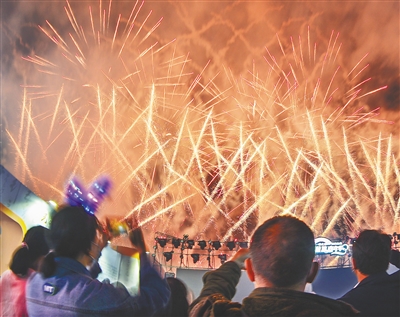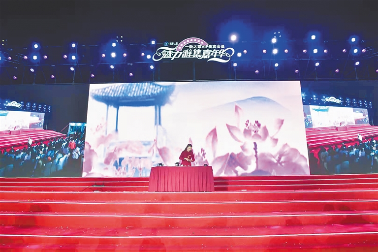 这是首届一龄之家VIP魅力雅集嘉年华活动现场。活动除烟花秀之外,还有精品雅集博览、“非遗”文化产品、中华美食节、风情文艺演出、无人机表演、欢乐大巡游等主题活动,并设置了18个主题展区展示国内部分地区的特色产品。