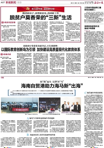 海南自贸港助力海马新“出海”