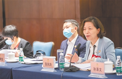 ②省政协委员张凤玲在发言。本报记者 袁琛 摄