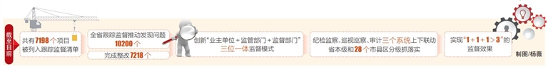 “纪检监察、巡视巡察、审计三个系统上下联动,省本级和28个市县区分级抓落实,同步开展、同向发力,一步到位实现对全省工程、信息化、用海用地等共7198个项目跟踪监督全覆盖。”省跟踪监督领导小组办公室负责人总结道。
