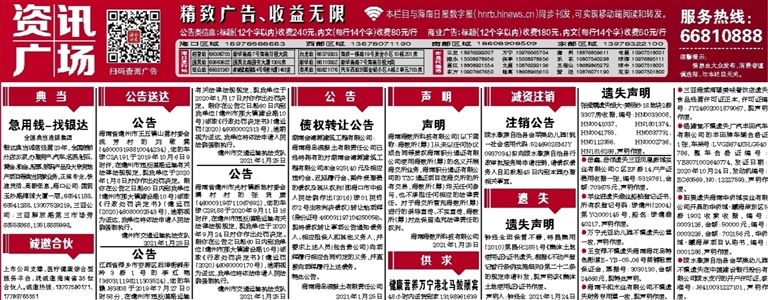 海南省儋州市王五镇山营村委会流芳村的刘敏箕(460003198810044234),您的车琼C2A191于2019年10月6日9时许,在儋州市违反道路运输有关法律法规规定,现我单位于2020年1月8日对你作出处罚决定。限你在公告之日起60日内到我单位(儋州市那大镇建设路10号)领取《行政处罚决定书》(儋运罚(2020)46080002543号),逾期视为送达,我单位将依法申请人民法院强制执行。