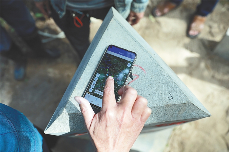 符江华此次参与的联检换桩,与以往最大的不同是,他只需在界管宝App上“打卡”就能完成工作。过去,他要先找到界桩在地图上的位置,再到现场联检作业。如今,他只需在界管宝App上查询定位界桩相关信息便可出发。与此同时,在新界桩换好后,他需要给新界桩拍照上传系统,完成新界桩“上岗”前的仪式。有了信息化技术保障,符江华不用再为如何将界桩的第一手数据准确交接给新的界管员而烦恼,“新人”们也不用再花额外时间去认路找桩,只需定时按照导航指示巡界汇报。