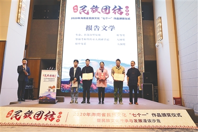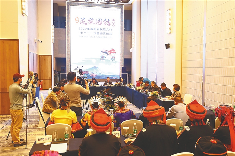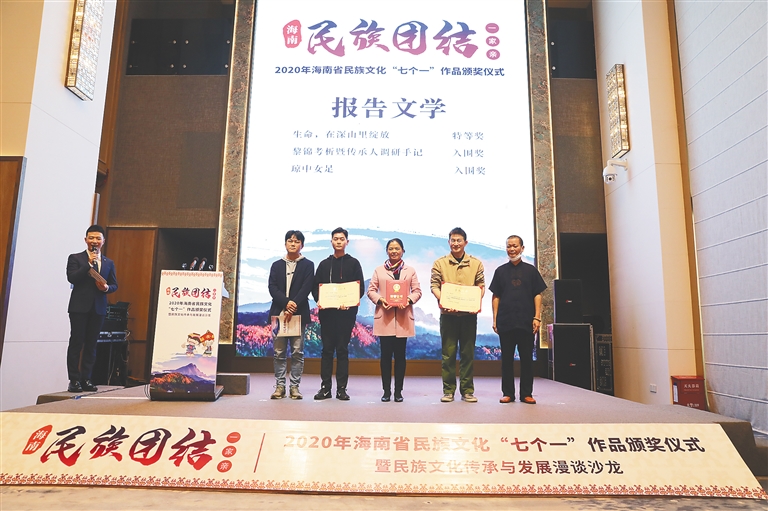 1月21日,对于广大少数民族文化爱好者来说,是个值得高兴的日子———由海南省民族宗教事务委员会、海南日报报业集团联合主办,海南省作家协会、海南省文学院、海南省民间文艺家协会协办的“海南省民族文化‘七个一’作品征集评选活动”(以下简称“七个一”活动)举行颁奖仪式,气氛热烈。