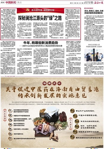 | 海南日报 中国新闻焦点 014 2021-01-251 2021年01月25日 星期一 |
