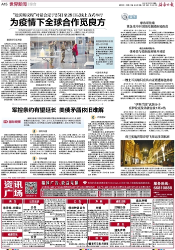 | 海南日报 世界新闻综合 015 2021-01-251 2021年01月25日 星期一 |