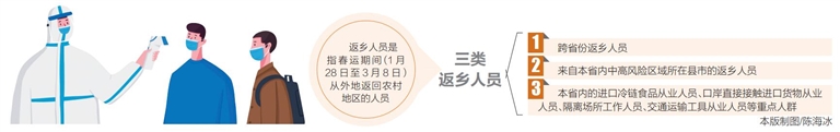 本报海口1月25日讯 (记者马珂)1月24日,根据国务院统一部署,海南省新型冠状病毒肺炎疫情防控工作指挥部下发《关于春运期间做好返乡人员管理工作的通知》(以下简称《通知》)。《通知》明确,今年春运期间,我省将对三类返乡人员进行相应管控,加强返乡人员管理。