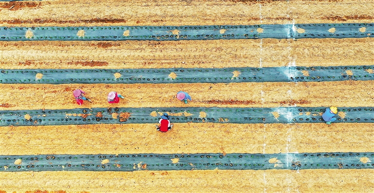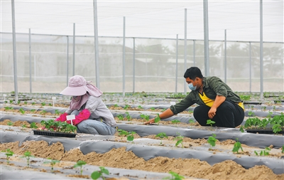 为迎接今年三月下旬中国种子大会暨南繁硅谷论坛在三亚召开,承担该会议地展任务的崖州国家现代农业产业园农作物新品种新技术田间展示推广中心,已进入苗期管理阶段。图为基地的工人们正在田间忙碌。