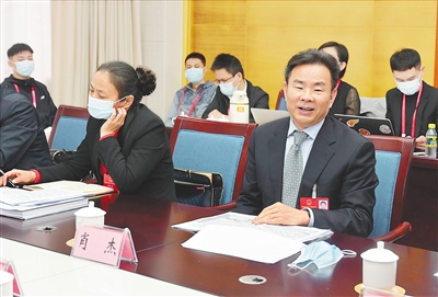 1月24日,参加省六届人大四次会议的代表们分组审议政府工作报告。图为肖杰代表参加三沙代表团审议。本报记者 王凯 摄