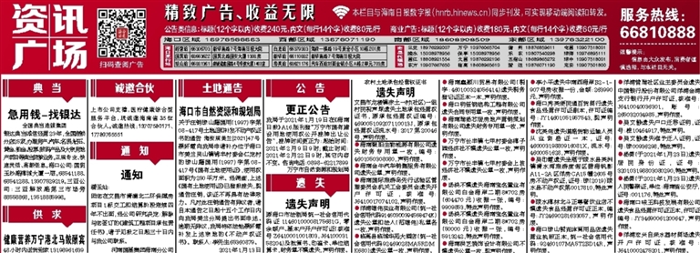 ●洋浦雄伟实业有限公司(统一社会信用代码91460300394568474K)遗失公章和法人(范雄伟)私章各一枚,声明作废。