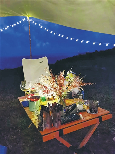 “民族风的毯子,日系风的藤椅,北欧风的小台灯,经过大家的精心搭配,为整个场景增添了家的温馨感,将精致的生活态度表现得恰到好处。”豪华露营工作人员莫娜说。