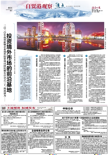 二〇二〇年我省新增企业境外投资项目同比增长百分之三十,海南成为——~~~