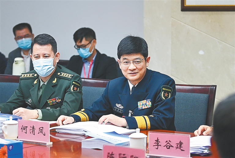 1月26日,参加省六届人大四次会议的代表们分组审议政府工作报告等。图为何清凤代表参加解放军代表团审议。本报记者 袁琛 摄