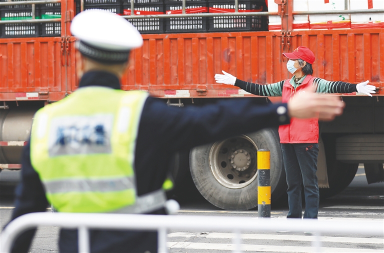 在各方努力下,车辆滞留等待的时间越来越短。18时许,秀英港的小车已基本疏运完毕,只剩下大货车仍在排队等待过海。