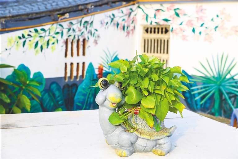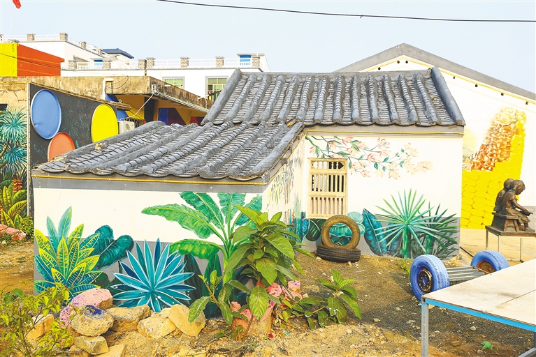 入驻艺术村的画家们,利用专业优势,自发成立文艺志愿服务队,他们深入村里的小巷,因地制宜进行墙绘,将海南的热带风光画在村里,三角梅、热带植物、海洋生物等丰富多彩的画面栩栩如生,成为艺术村的一道靓丽风景线。“整个村子,内外都透着艺术范。”王照胜笑着说,村中闲置多年的房子很快被租出去了,如今村中到处是各类书画作品,原本“土里土气”的小村庄变得高大上了,村民满是自豪。