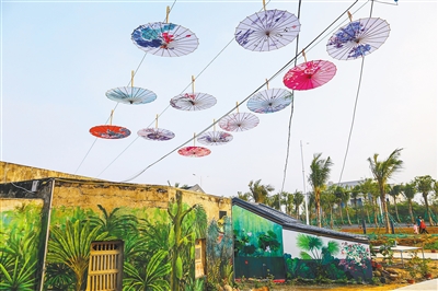 海口美兰区灵山镇美庄村乡村振兴工作队来到了村里后,打造艺术村的事被正式提上了日程。“我们是带着任务来的,江东新区的乡村振兴,必须有特色,要给自贸港建设锦上添花才行。”陈苏一发现,权拥东村底子好,没有贫困户,文化底蕴深厚,村里的画家还有建设艺术村的计划,生态振兴、文化振兴是条好路子。