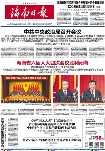 ~~~沈晓明当选省人大常委会主任 冯飞当选省长 表决通过关于海南省国民经济和社会发展第十四个五年规划和二〇三五年远景目标纲要的决议等七项决议