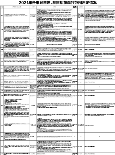 2021年各市县禁燃、禁售烟花爆竹范围划定情况