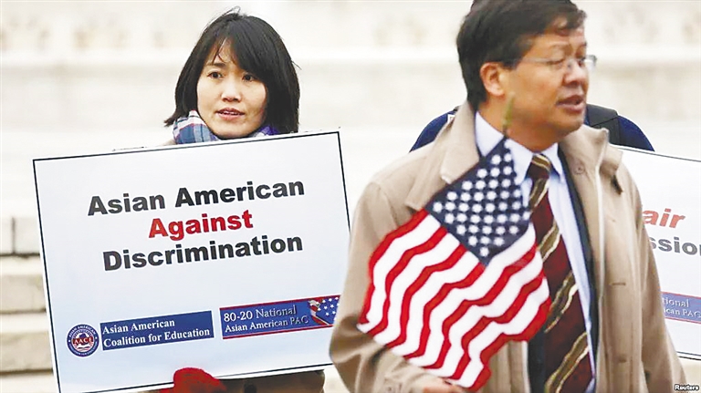 去年10月,美国司法部起诉耶鲁大学,指控该校在本科招生过程中歧视亚裔申请者,把种族身份作为“招生决策的决定性因素”,违反了美国《民权法》。另一所名校哈佛大学也被批评在招生过程中涉嫌歧视亚裔。