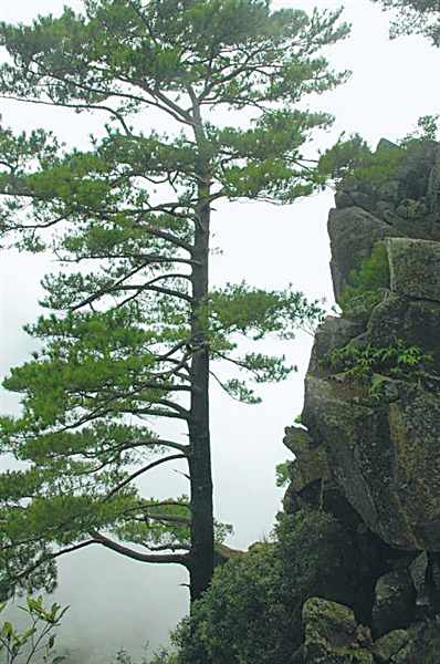 霸王岭上的雅加松,树干圆满通直,挺拔耸立,松枝针叶茂盛,分布于悬崖陡壁之上,拥有犹如“小黄山”般的景致,因此人们也称之为“小黄山迎客松”。