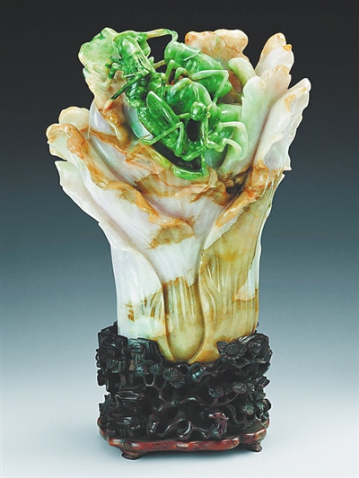从宝玉石学的角度来说,狭义的玉石主要分两类,一类是软玉,像和田玉、岫岩玉等都属于这类;另一类是硬玉,主要指的就是翡翠。翡翠应该是生活中最常见的玉石器了,老百姓戴的手镯、挂坠大部分都是翡翠质地。翡翠与其他诸多玉石器还有不同,它并不是土生土长的中国玉器,翡翠又名缅甸玉,自然是产自于缅甸。明代晚期翡翠开始流入中国,清代慈禧太后是翡翠有名的拥趸,据说慈禧墓中随葬有翡翠西瓜、翡翠甜瓜、翡翠佛和翡翠白菜等诸多翡翠制品。但民国年间军阀孙殿英盗掘了慈禧墓,大量文物散落于民间,故而无从考证这段历史。不过在台北故宫博物院还能看到清宫旧藏的一颗翡翠白菜,另外天津博物馆的翡翠蝈蝈白菜也小有名气,都是翡翠雕刻的精品之作。
