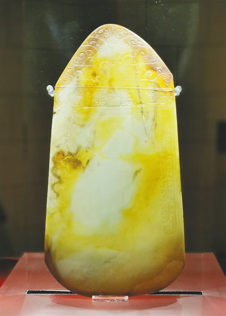 虽然玉器的颜色很多,但纵观整个玉器发展史,大部分出土的玉器还是以一种或两种颜色居多,即便有渐变色和沁色,也很少有彩色的玉器出现,唯一能够称得上五彩斑斓的只有四川的金沙玉器了。