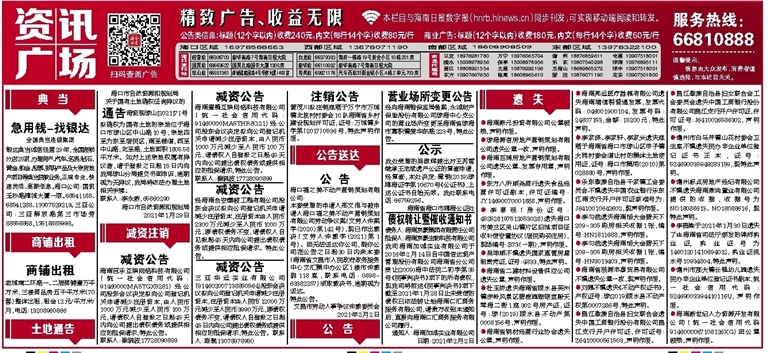●海南新世纪人力资源开发有限公司(统一社会信用代码9146000067108126XG)因公章破损,声明作废。