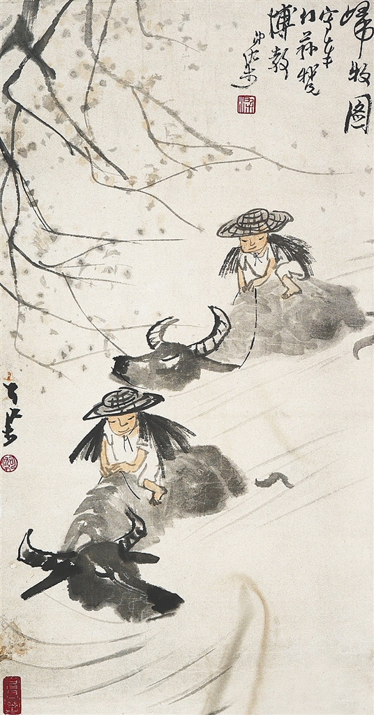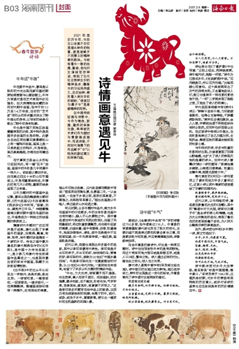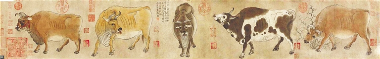 在中国传统绘画与诗歌中,牛作为善良、敦厚、勤劳的审美对象,常常被艺术家们作为题材与意象画进画中、写进诗里,不同时代背景下的作品赋予“牛”以特殊的象征意义和审美内涵。