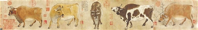 以牛为题材的中国画作品记载,最早出现在魏晋南北朝时期,《历代名画记》引东晋葛洪《西京杂记》中所写,“陈敞、刘白、龚宽并工牛马。” 伴随着魏晋南北朝时期中国花鸟画的独立,牛逐渐成为一种独立的绘画题材跃然纸上。