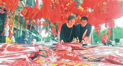 2月7日,在洋浦经济开发区的年货市场,当地居民选购年货。