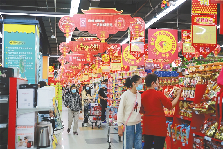 在百佳汇(中兴店)等大型商超,冷鲜肉价格较低,也有特价猪肉优惠促销,猪脚每斤28元,排骨每斤33.8元,特价猪肉19.8元,猪粉肠每斤29.8元,牛肉每斤55元……在广百家(儋州店),瓜果蔬菜和肉类等生鲜产品丰富,价格稳定。“我们承诺春节假期期间不涨价。”广百家(儋州店)负责人伍世欢说,重点保障粮油肉蛋菜奶等主要生活必需品供应充足。