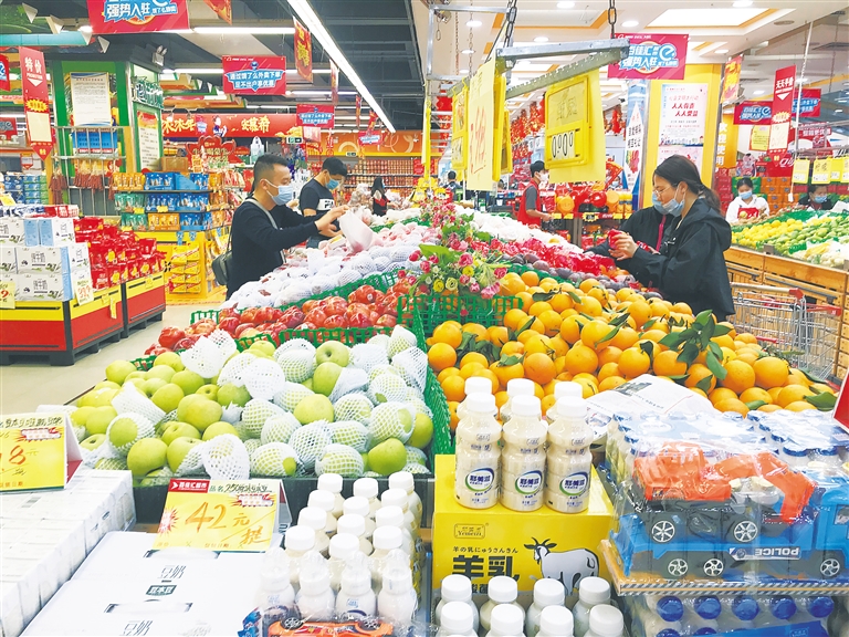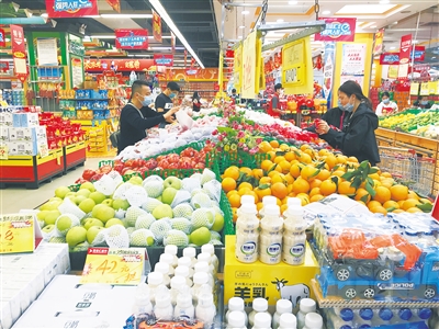 2月5日,在儋州市滨海新区旅游产业园的“菜篮子”平价生鲜超市,从黑龙江哈尔滨来儋州的游客刘佳音正在选购生鲜产品。这家“菜篮子”平价生鲜超市是2020年11月初开业的,销售芹菜、茄子、上海青、大白菜、尖椒等15种蔬菜,“原来住的地方没有大生鲜超市,小商店卖的蔬菜不新鲜,价格还贵,只好坐车到白马井镇墟去买菜,来回一趟路费20元。新开的平价生鲜超市离我家500米,蔬菜、猪肉新鲜,品种多,价格不贵,我每天都来买”,刘佳音告诉海南日报记者,平价生鲜超市的蔬菜价格是按儋州市政府限定的最高价销售。