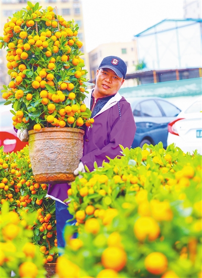 二月十日,在海口市琼山区红城湖延长线附近,市民选购年桔。本报记者 张茂 摄