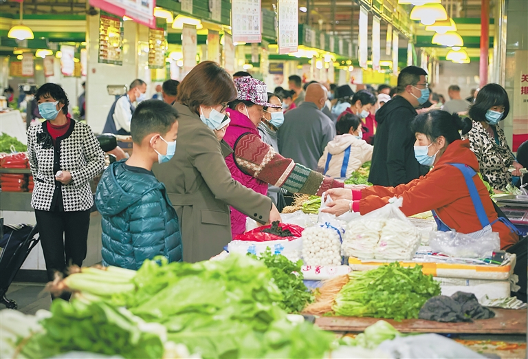 2月11日,在海口市秀英区海玻农贸市场,前来采购蔬菜、准备年夜饭的市民游客络绎不绝。 本报记者 封烁 摄