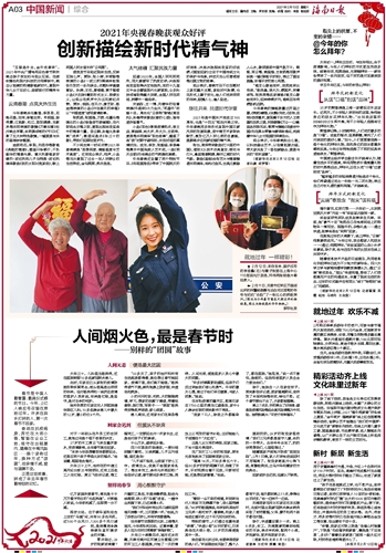 2021年是中国共产党成立100周年,也是“十四五”规划开局之年。牛年春晚用多样形式呈现中国日新月异的发展图景,老中青艺术家联袂献艺,激发亿万人民心底的自豪感,提振阔步迈向新征程的精气神。