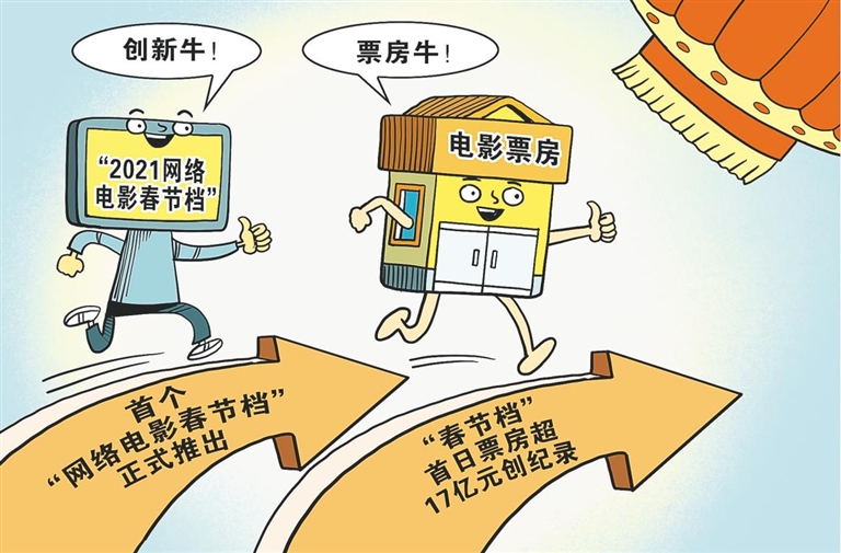——创新牛!首个“网络电影春节档”正式推出。此前,中国电影家协会网络电影工作委员会联合爱奇艺、腾讯视频、优酷共同发起了“2021网络电影春节档”,并公布了一份影片总数量多达43部的丰厚片单。业内人士指出,“网络电影春节档”概念的提出,也意味着视频平台离真正得到传统电影行业的认可,向前迈进了一步。