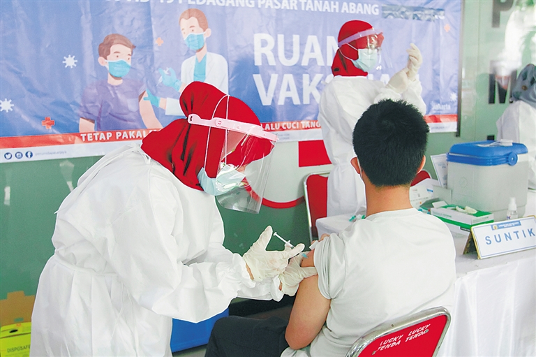 印度尼西亚首都雅加达政府考虑动用惩罚措施,以推广新冠疫苗接种。拒绝接种者将可能被处以500万印尼盾(约合2309元人民币)罚款。