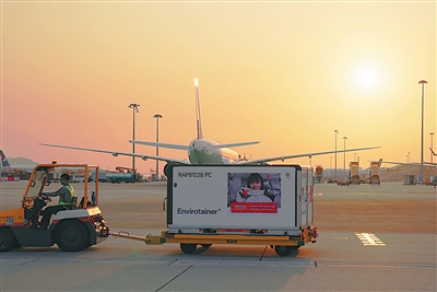 当日17时30分许,载有科兴疫苗的航班降落香港国际机场。随着舱门缓缓打开,装载疫苗的货柜箱被陆续卸载,并由专门人员和车辆送往指定地点进行储存。